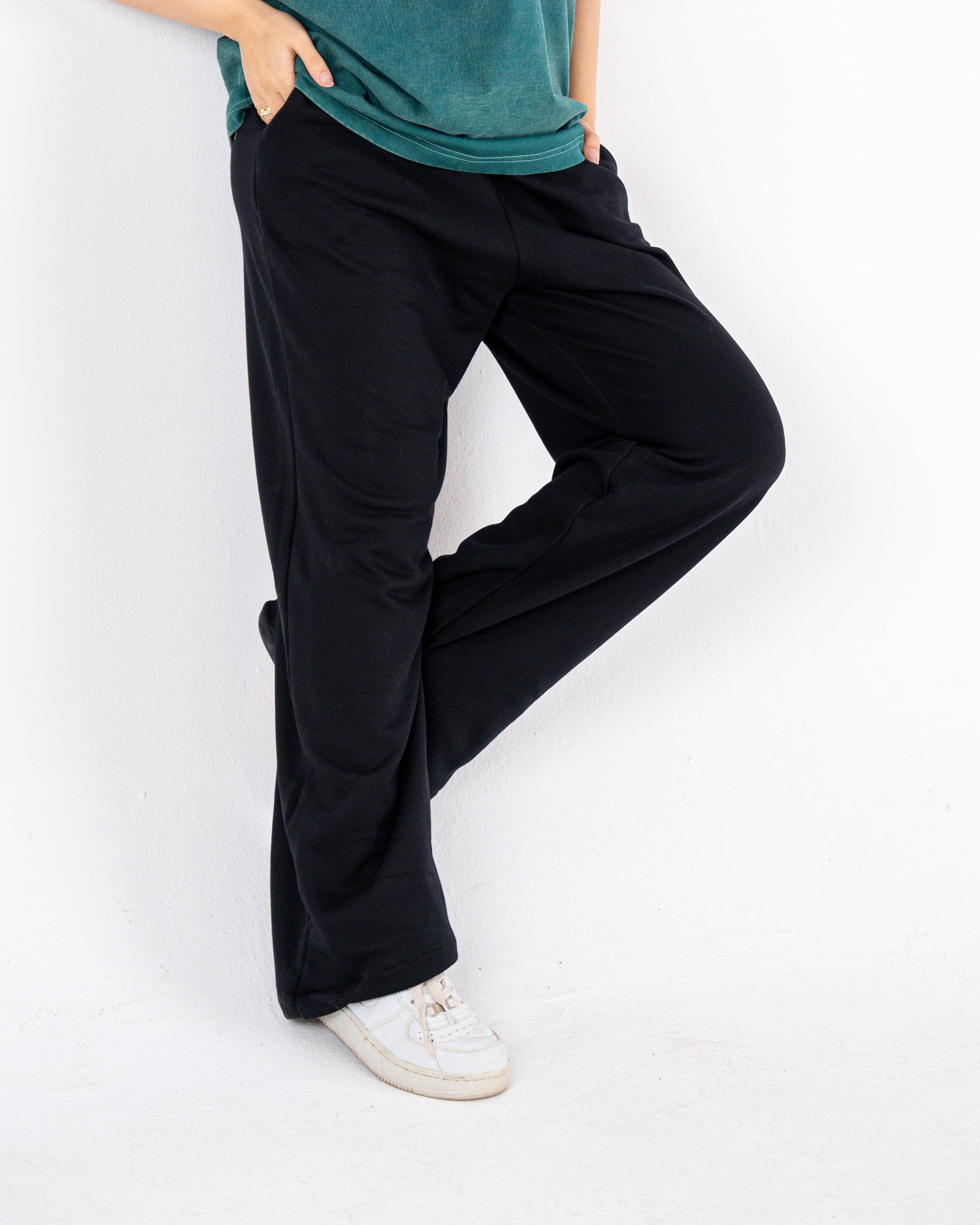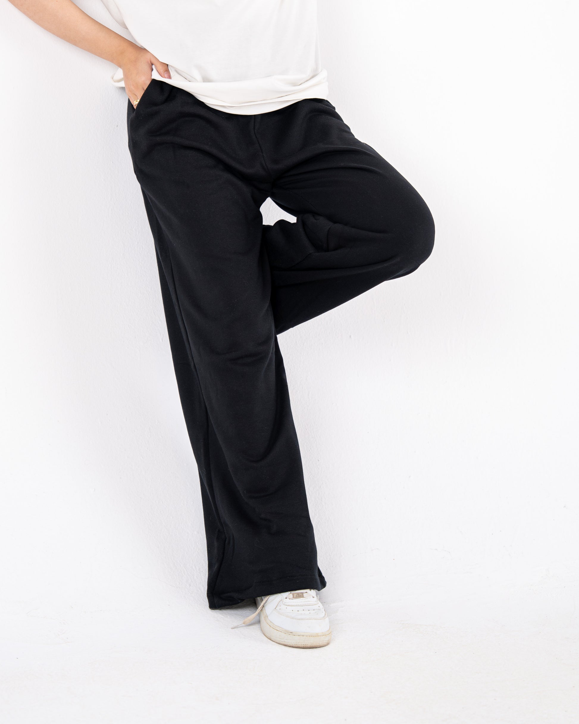 black wideleg sweatpants