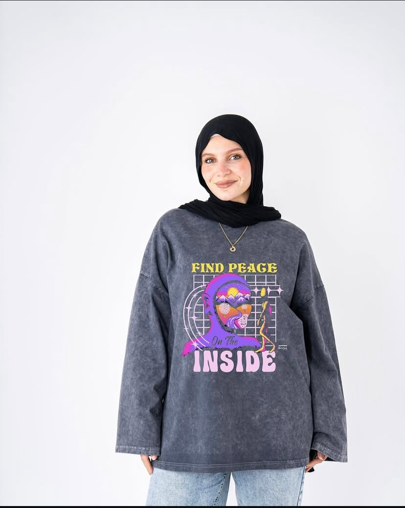 Find peace inside washed widesleeve t-shirt