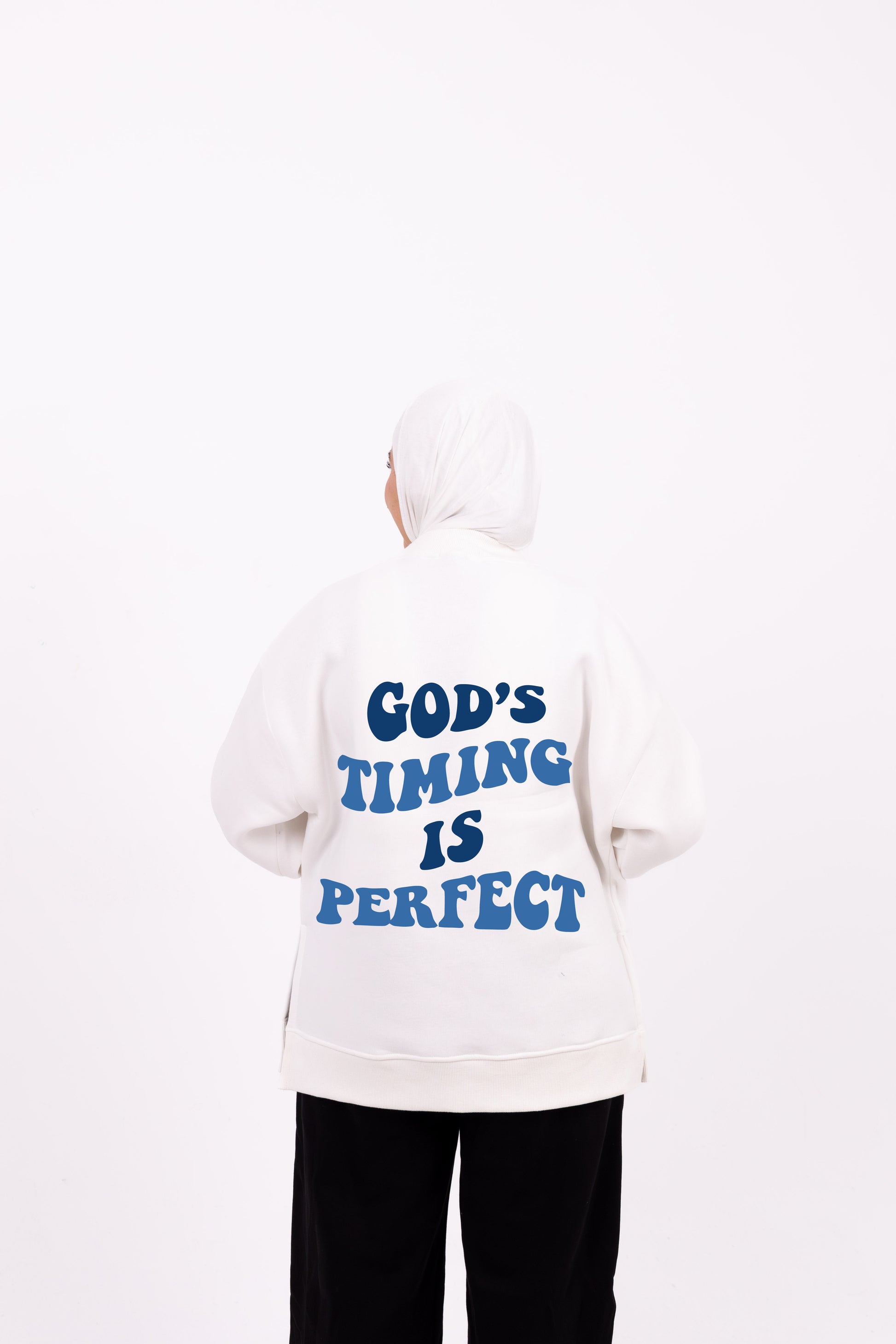 God timing white comfy-go sweatshirt