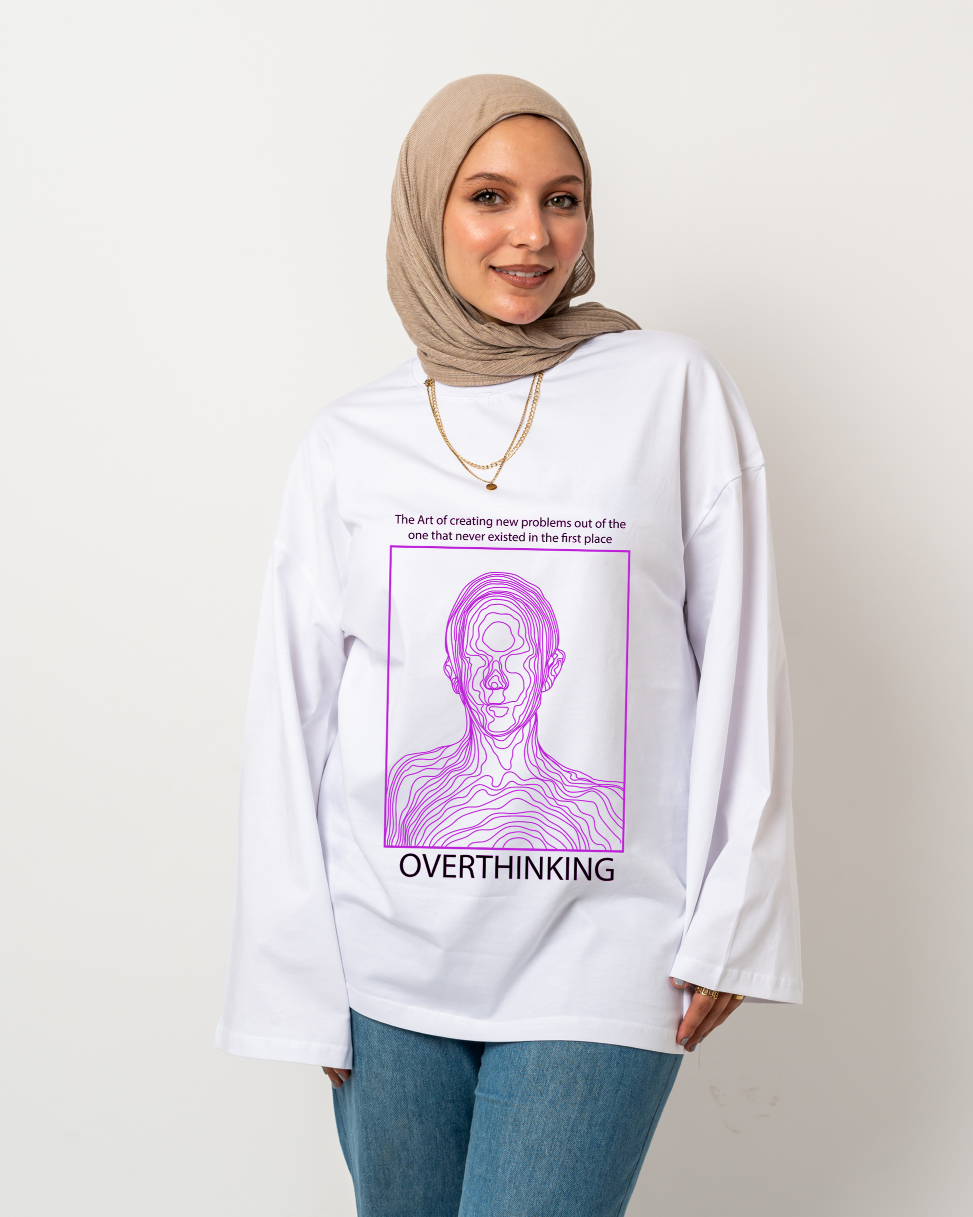 Overthinking white widesleeves t-shirt