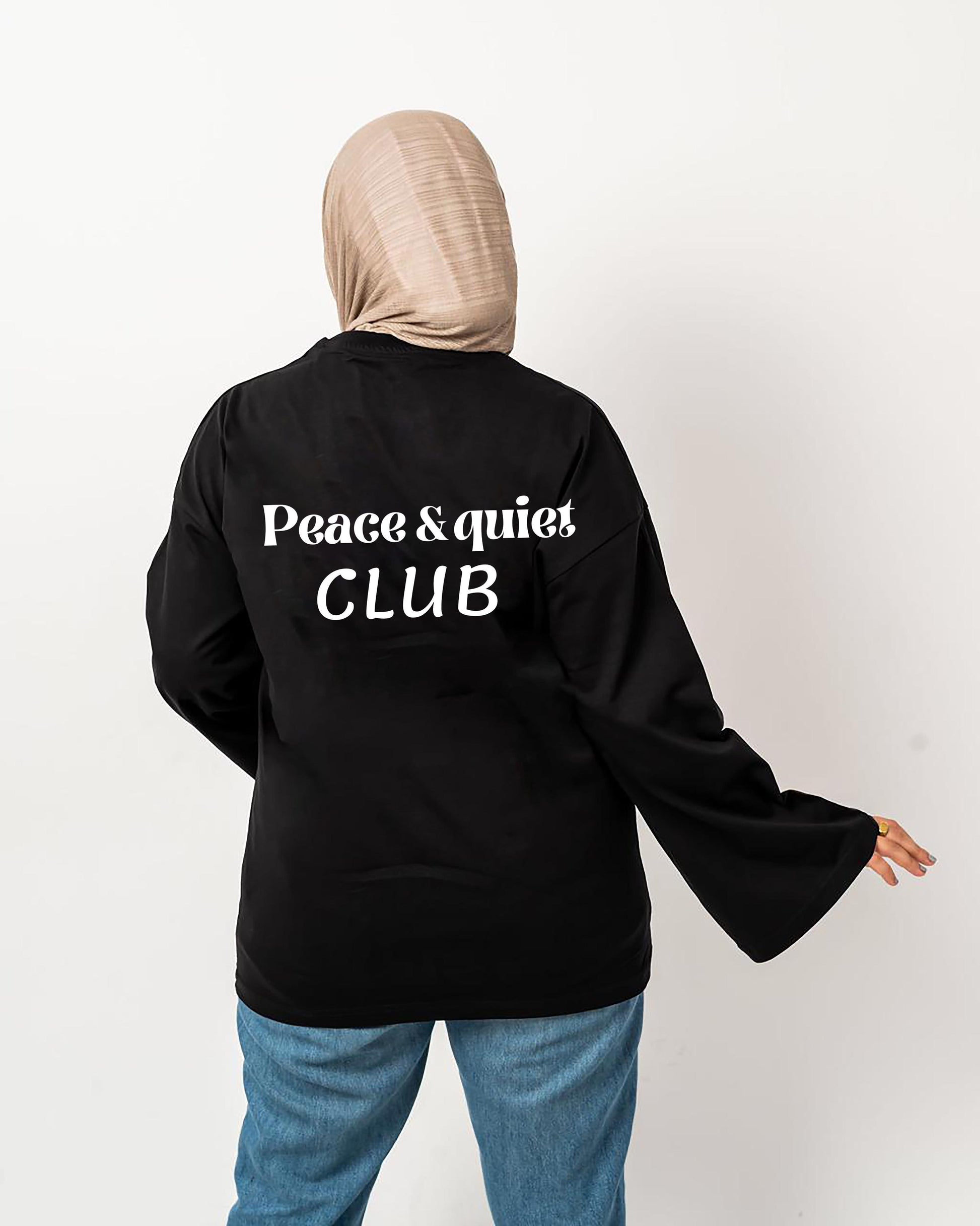 Peace and quite club black wide-sleeve tshirt