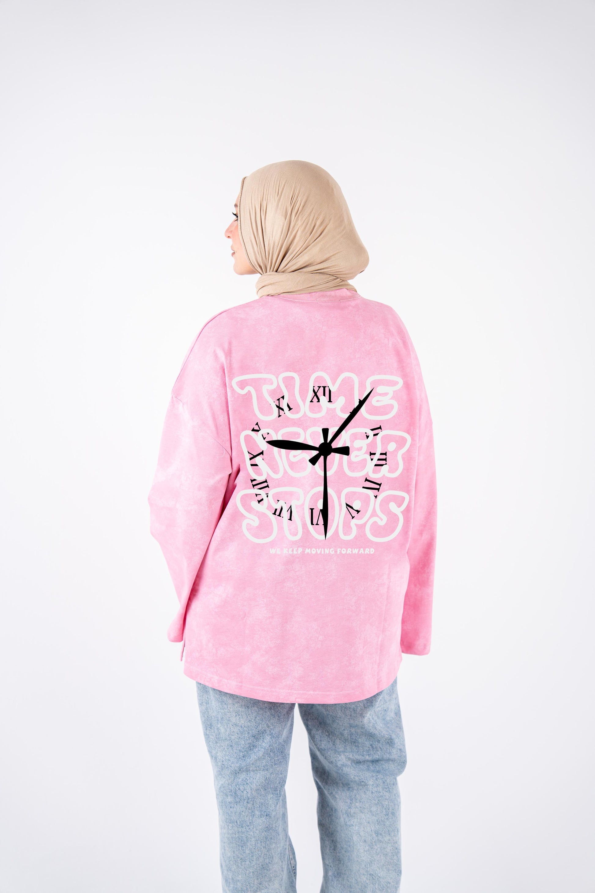Time never stop pink washed widesleeves t-shirt